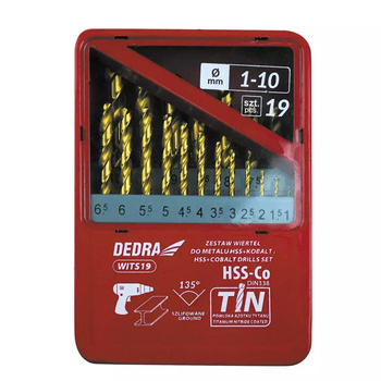 Zestaw wierteł do metalu, kobaltowych DEDRA WITS13 HSS+kobalt+TiN, 135°, 13szt