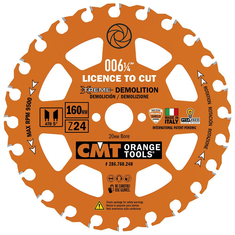 Xtreme Demolition to maksymalna żywotność narzędzia, tam gdzie inne piły polegają po pierwszym kontakcie z zardzewiałą śrubą. CMT zapewnia 20 razy więcej cięć niż konkurencyjne ostrza.