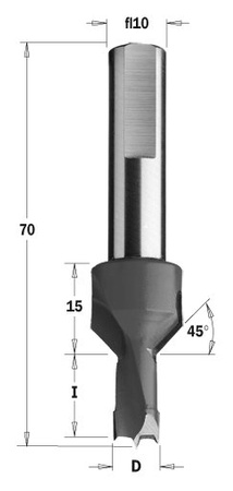 CMT Wiertło nieprzelotowe długie z pogłębiaczem D-10mm I-20mm L-70mm S-10mm Obroty Prawe Typ.377