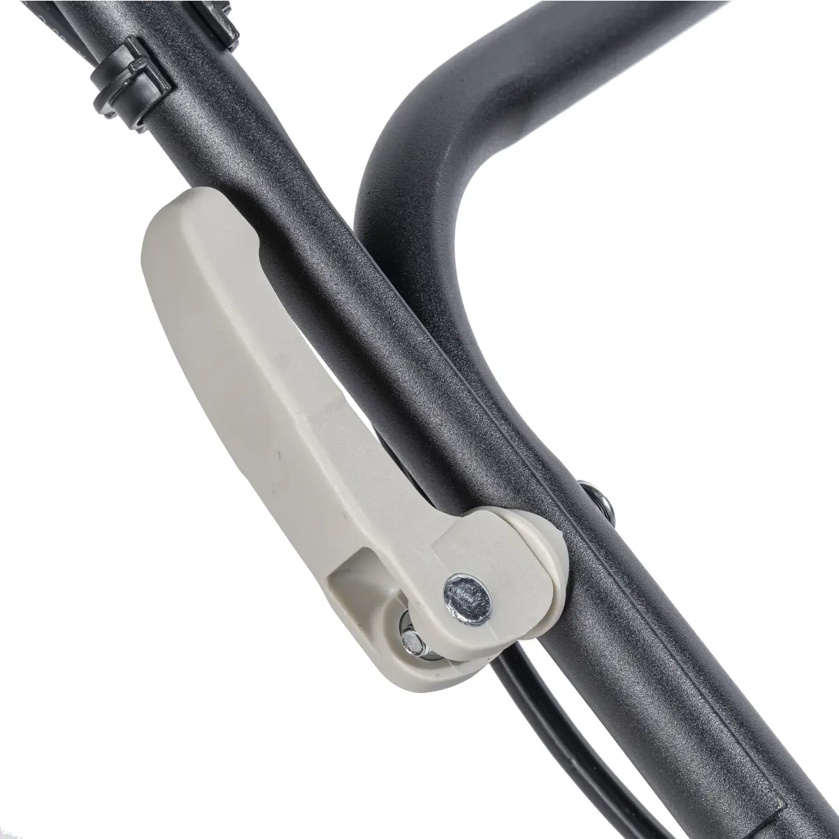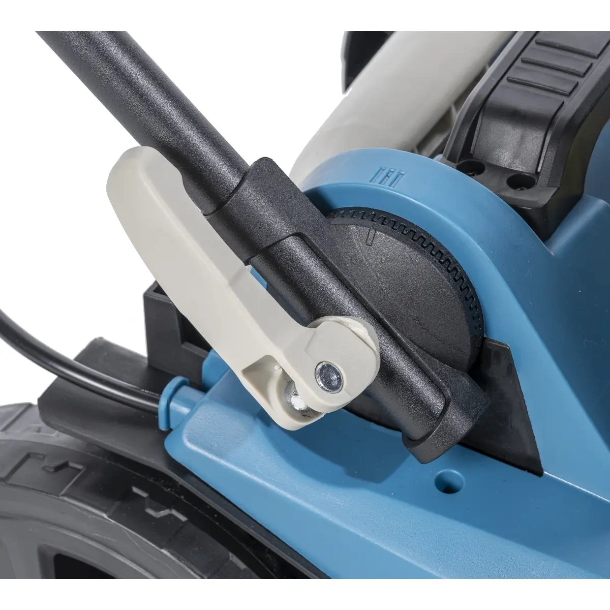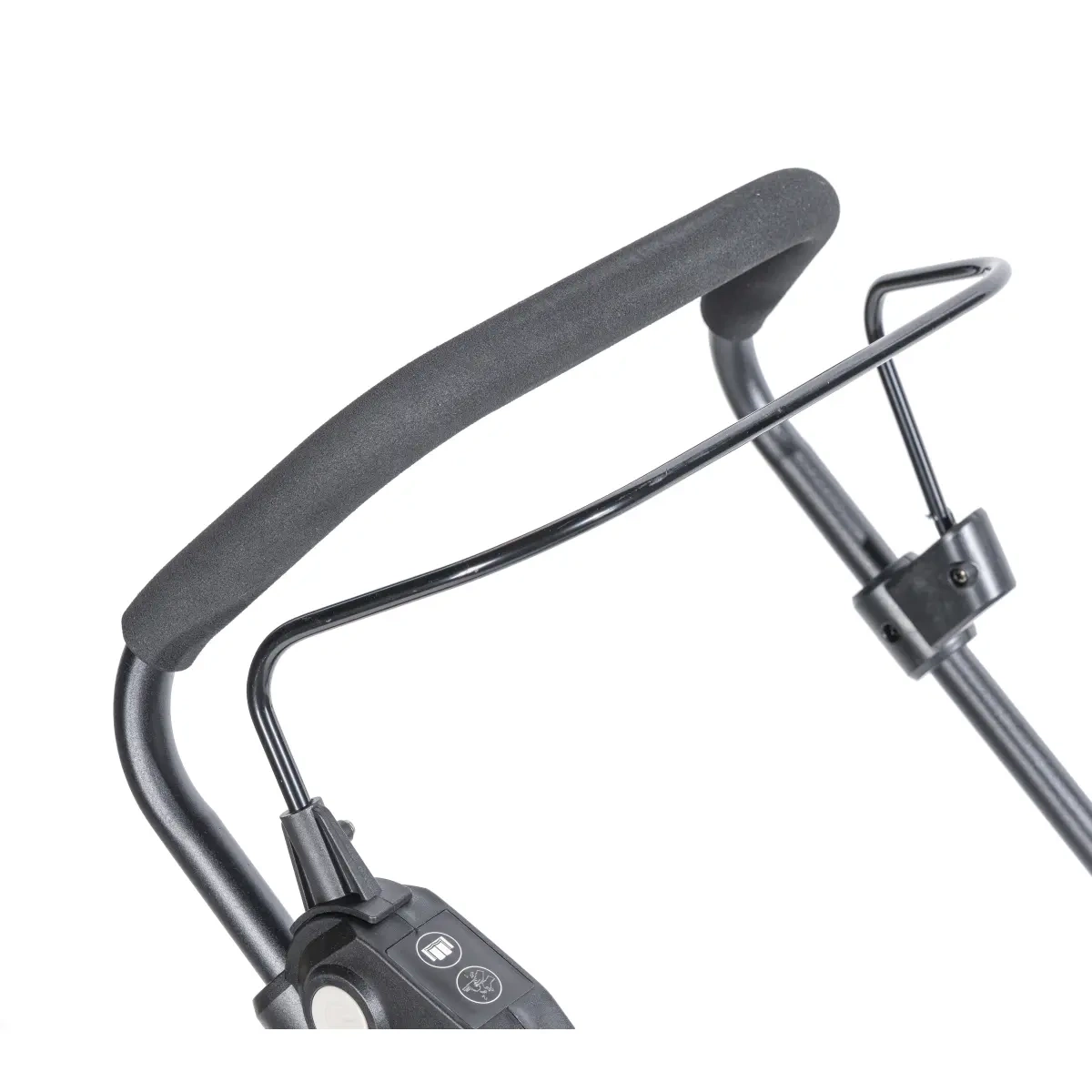 Ergonomicznie zaprojektowana rękojeść zapewnia komfortowy chwyt i łatwe prowadzenie kosiarki. Włącznik umieszczony bezpośrednio w rączce zwiększa wygodę i bezpieczeństwo użytkowania.