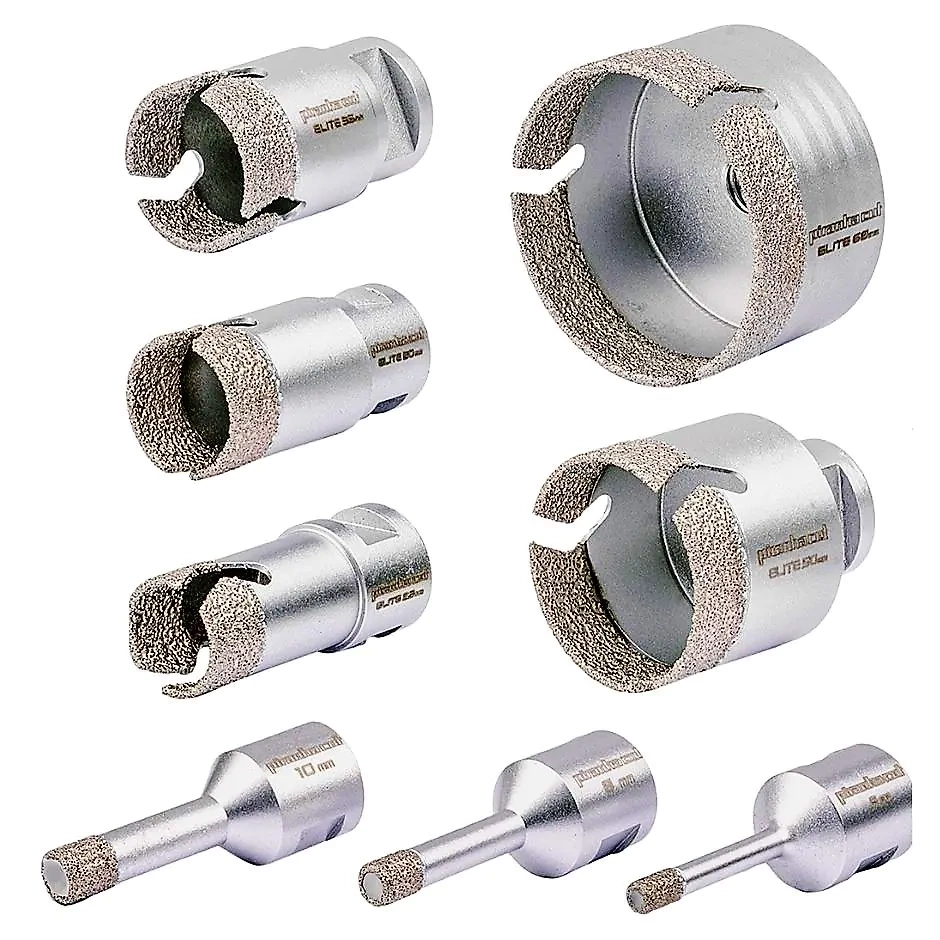 - Niespotykana żywotność: Diamenty lutowane w technologii **VTECH2** zapewniają 2-3X dłuższą żywotność w porównaniu do innych, markowych otwornic.